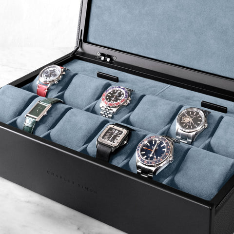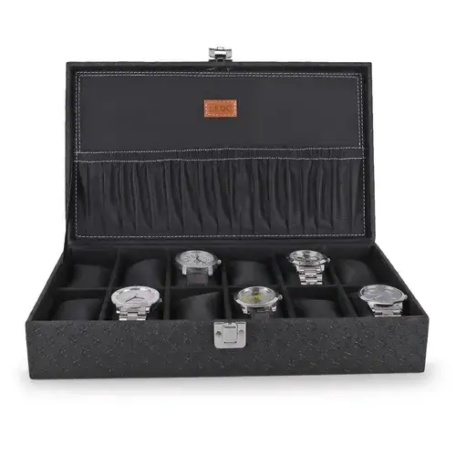 "Our Watch Boxes are crafted to keep your timepieces safe, organized, and elegantly displayed. Designed with premium materials, soft interiors, and secure compartments, they protect your watches from scratches and dust while adding a touch of luxury to your collection. Perfect for personal use or gifting."